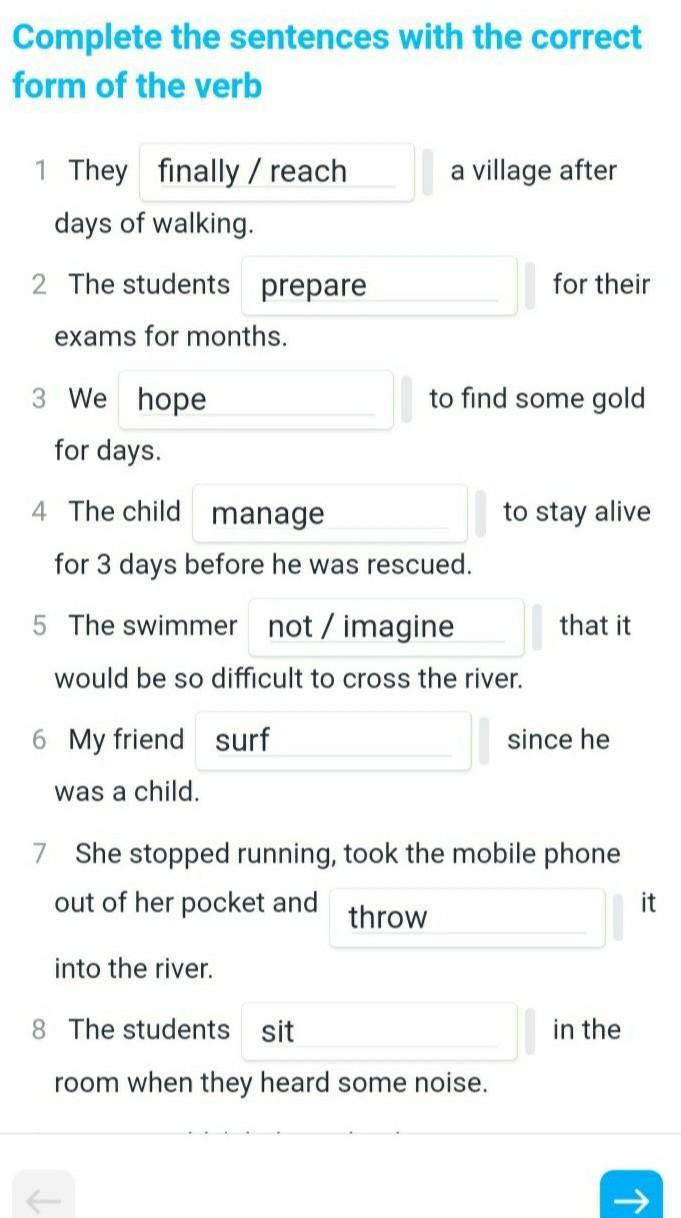 Завершите предложения правильной формой глагола