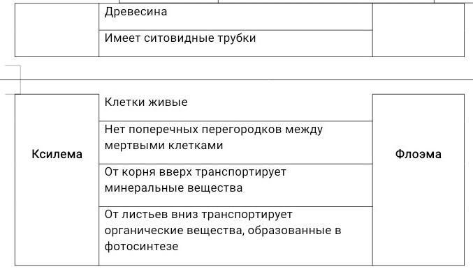 Флоэма имеет ситовидные трубки, клетки живые, от листьев вниз транспортирует органические вещества