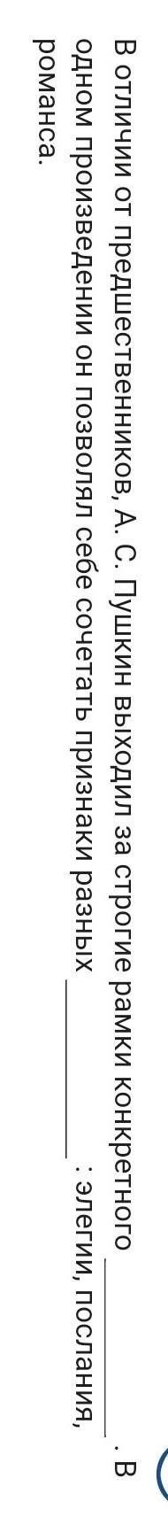 В отличии от предшественников, А. С. Пушкин выходил за строгие рамки конкретного ЖАНРА. В одном произведении он позволял себе сочетать признаки разных ЖАНРОВ: элегии, послания, романса.