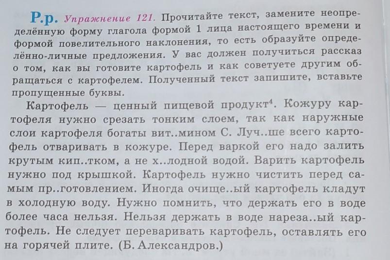 Р.р. Упражнение 121. Прочитайте текст, замените неопре-