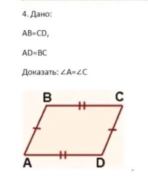 ⇒ ABCD - параллелограмм по признаку ⇒ ∠A=∠C по свойству противоположных углов параллелограмма.