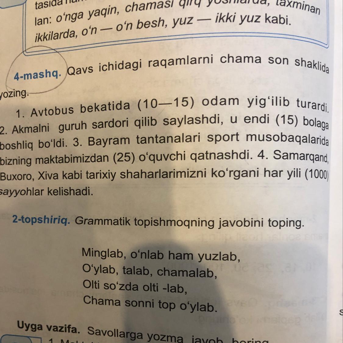 Предмет: Оʻzbek tili,