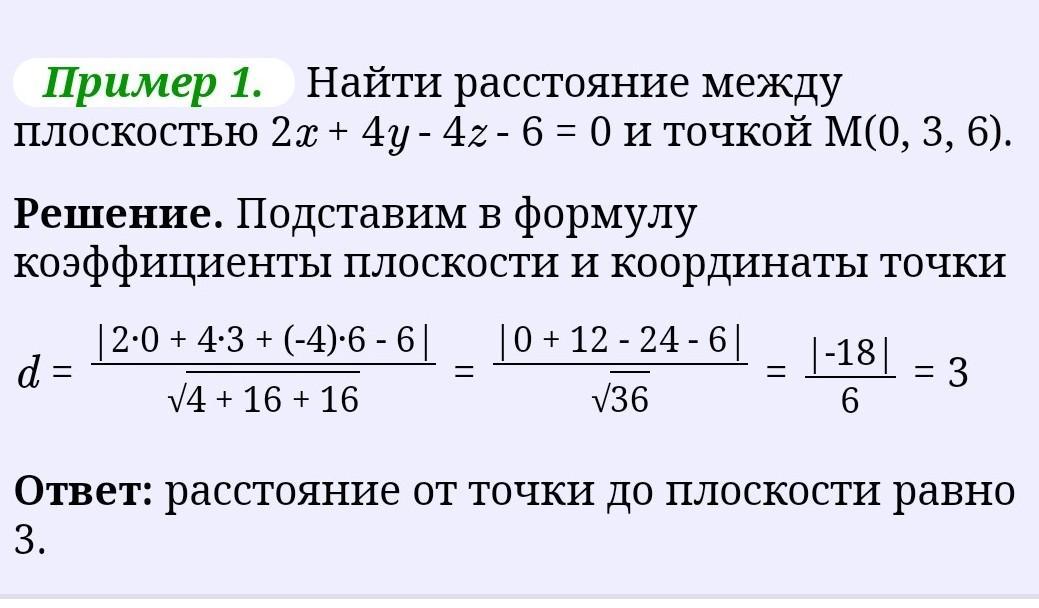1.Необходимо определить расстояние от точки M (2;4 : 2) до плоскости 2x+4y+2z+6=0.