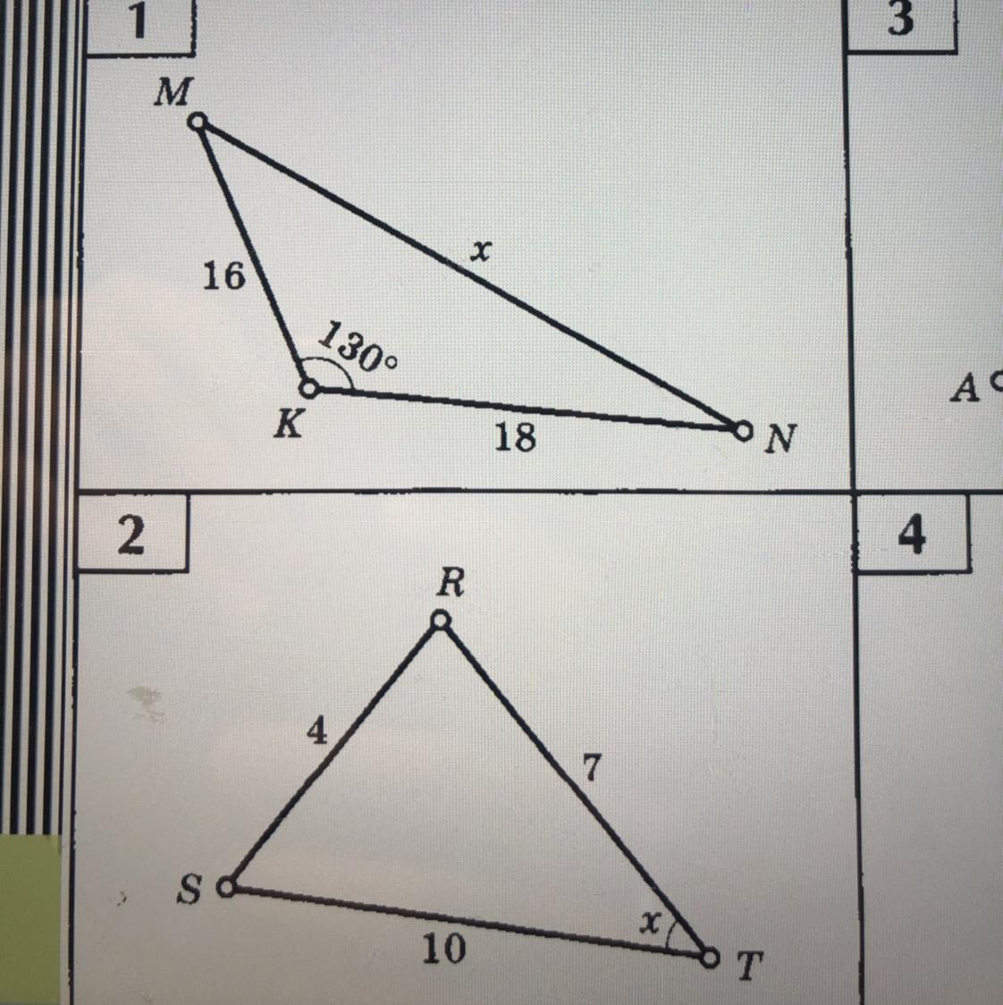 1) x = √(16^2 + 18^2 - 2*16*18*cos130°) ≅ 30,8
