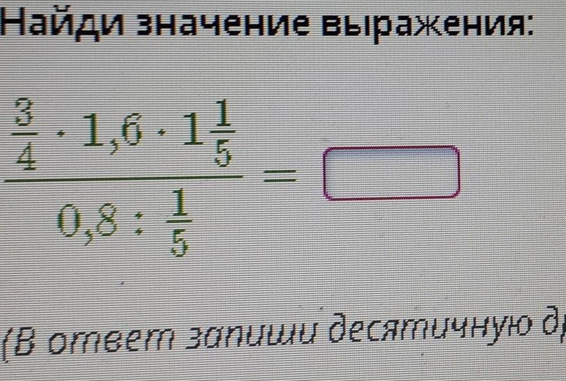 найди значение выражения 3/4×1,6×1 1/5 0,8÷1/5