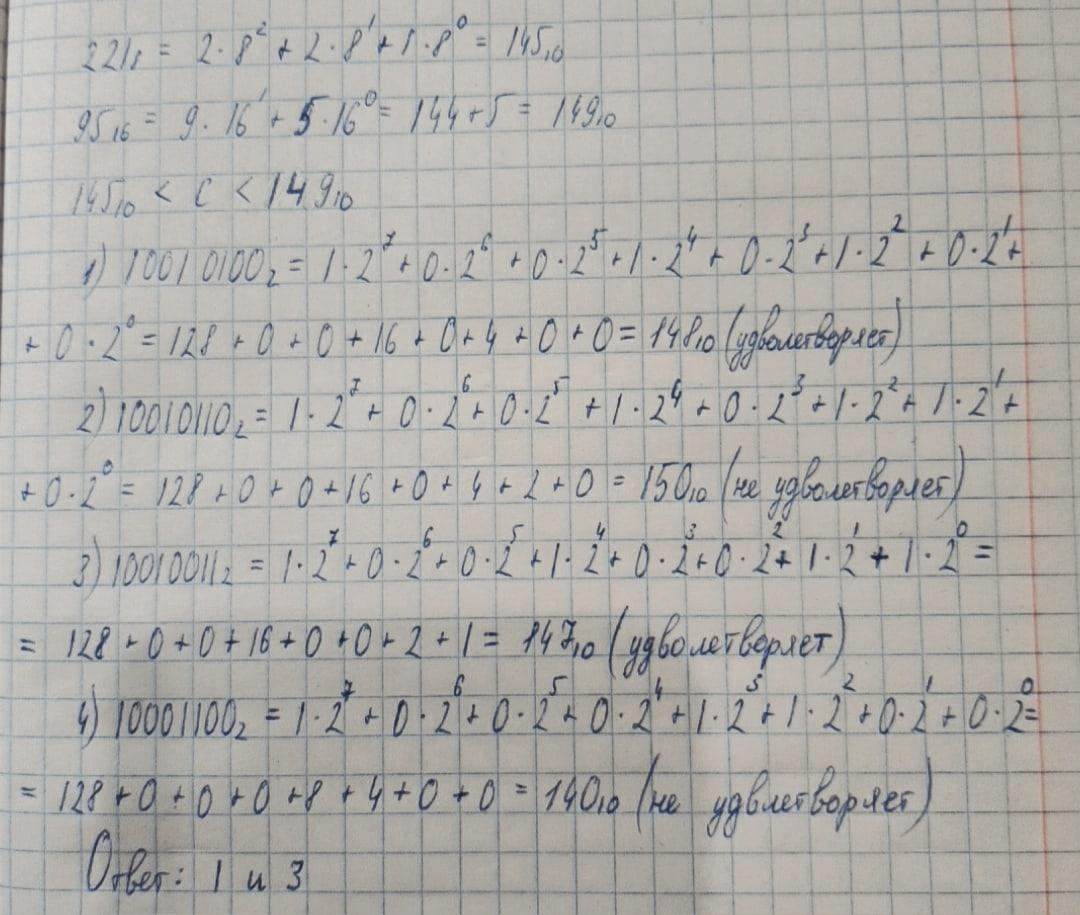 счисления, удовлетворяет неравенству 221(8) < С < 951(16)?