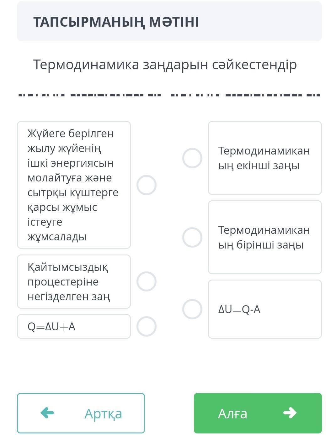 "жүйеге берілетін жылу оның ішкі энергиясын өзгертуге және жүйенің сыртқы күштерге қарсы жұмысына жұмсалады"-