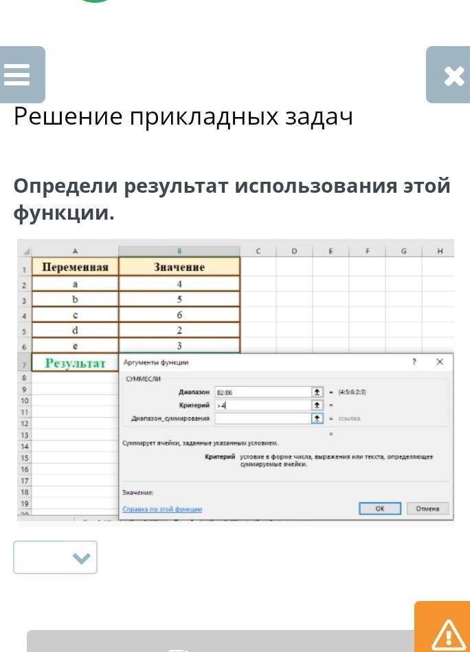 Условия >4, у нас две ячейки: 5 и 6 = 11