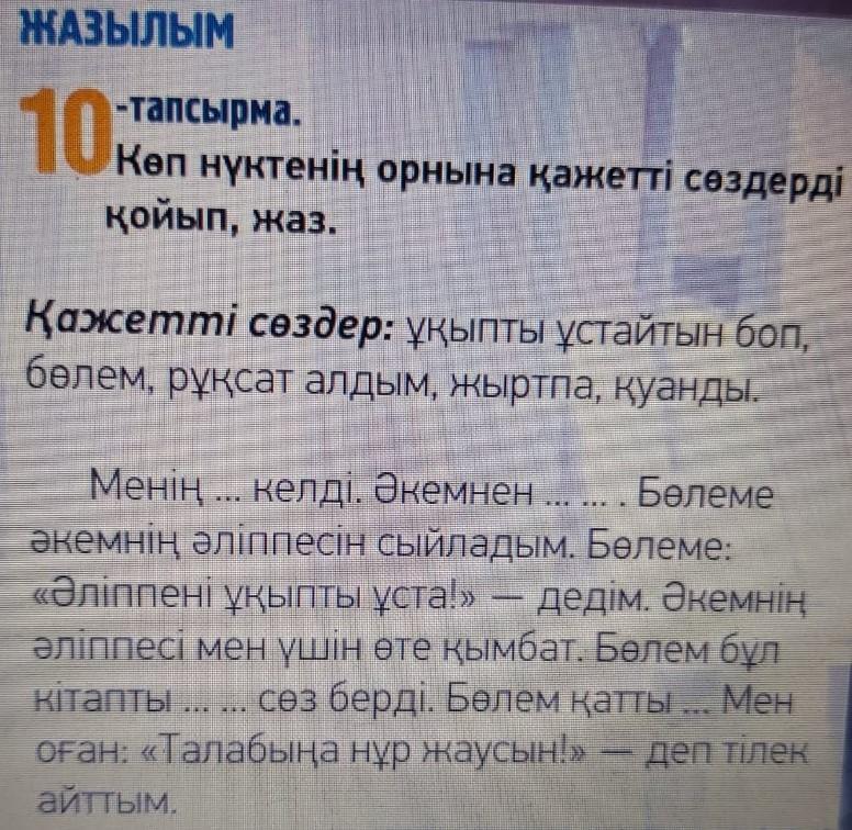 118 бет, 10 тапсырма.Вместо точек вставьте нужные слова.