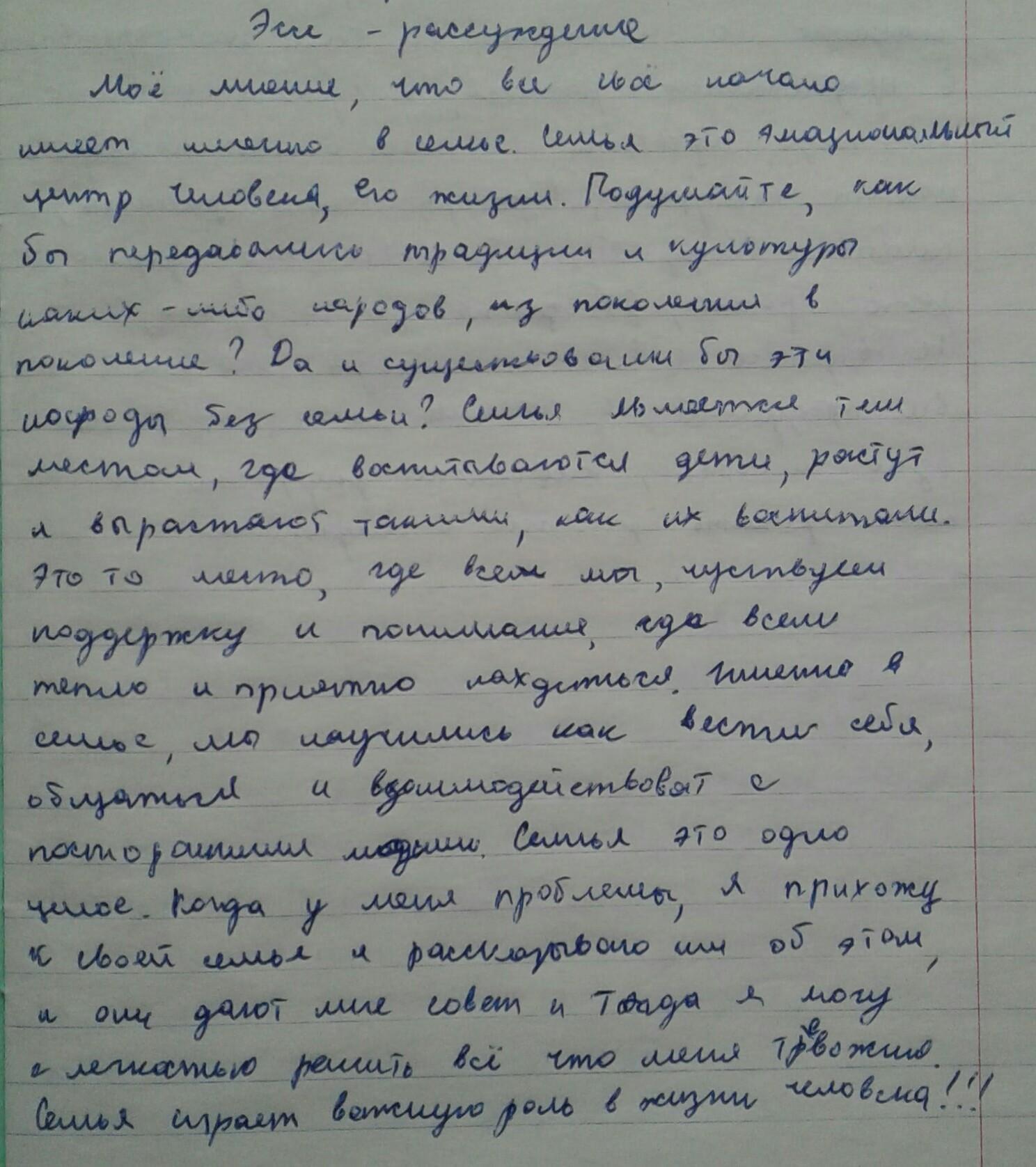 Напишите эссе-рассуждение на тему "Роль семь в жизни человека".