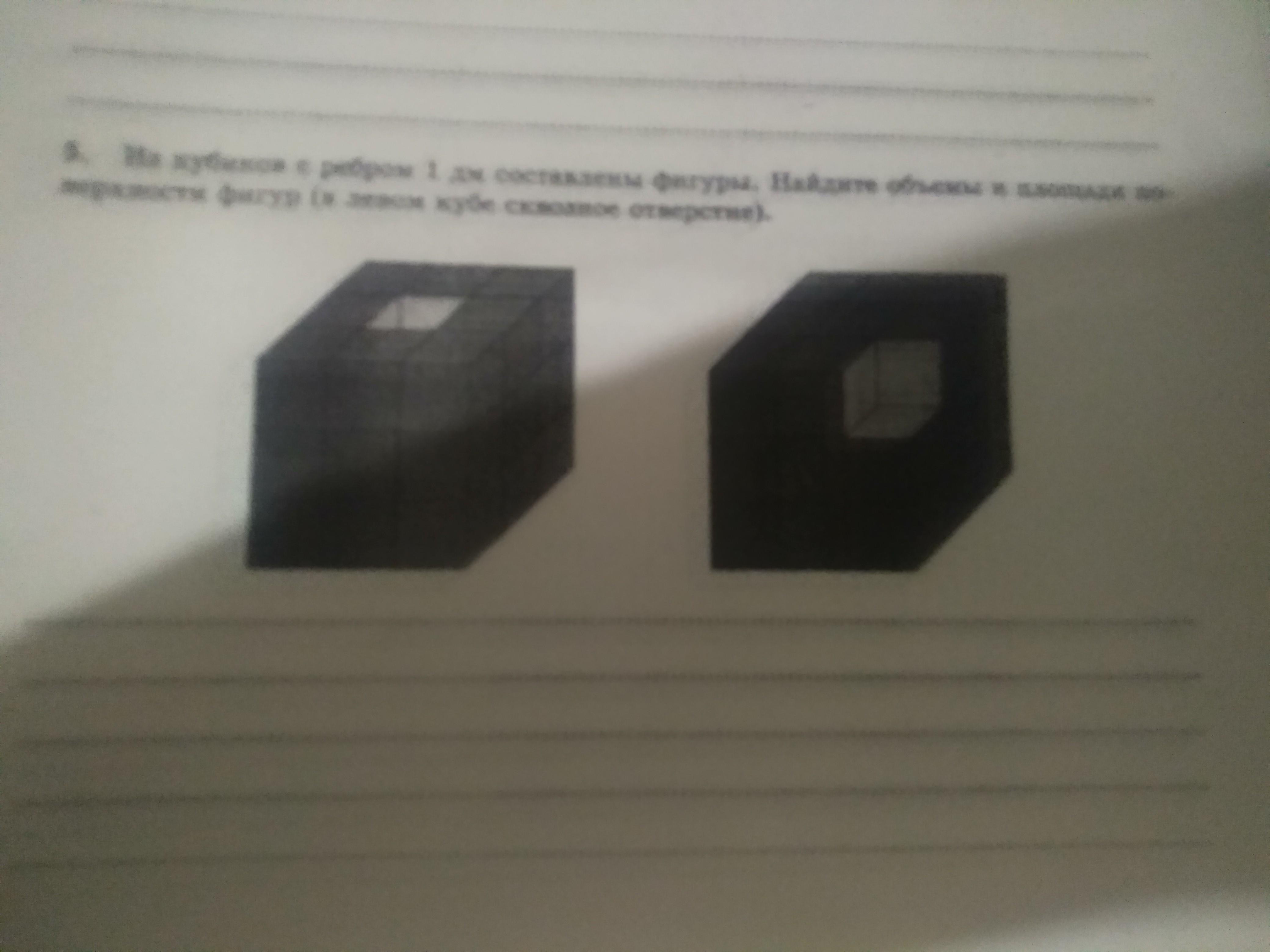 Из кубиков с ребром 1 дм составлена фигура Найдите объемы и площади поверхности фигур в левом ухе сквозные отверстия