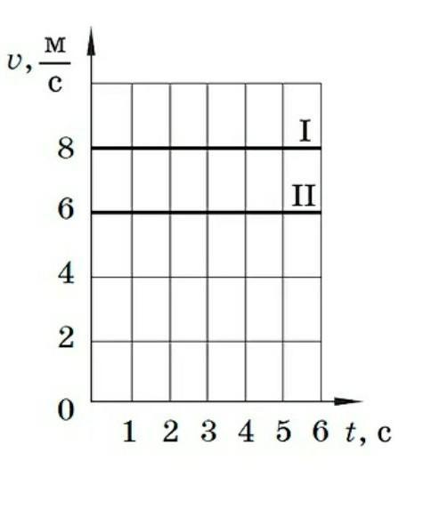 На рисунке приведён график зависимости скорости прямолинейного движения от времени для двух тел. Сравнив графики, можно утверждать, что