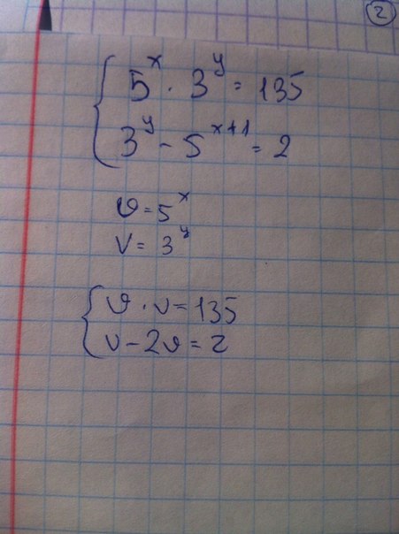 v=2+5u Подставим в первое и решим его относительно новой переменной u*(2+5u)=135 5*u^2 +2u -135=0 какой-то косяк с дискриминантом получается
