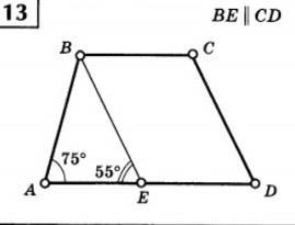 Затем ищем угол <ABE = 180 - (75+55) = 50 градусов