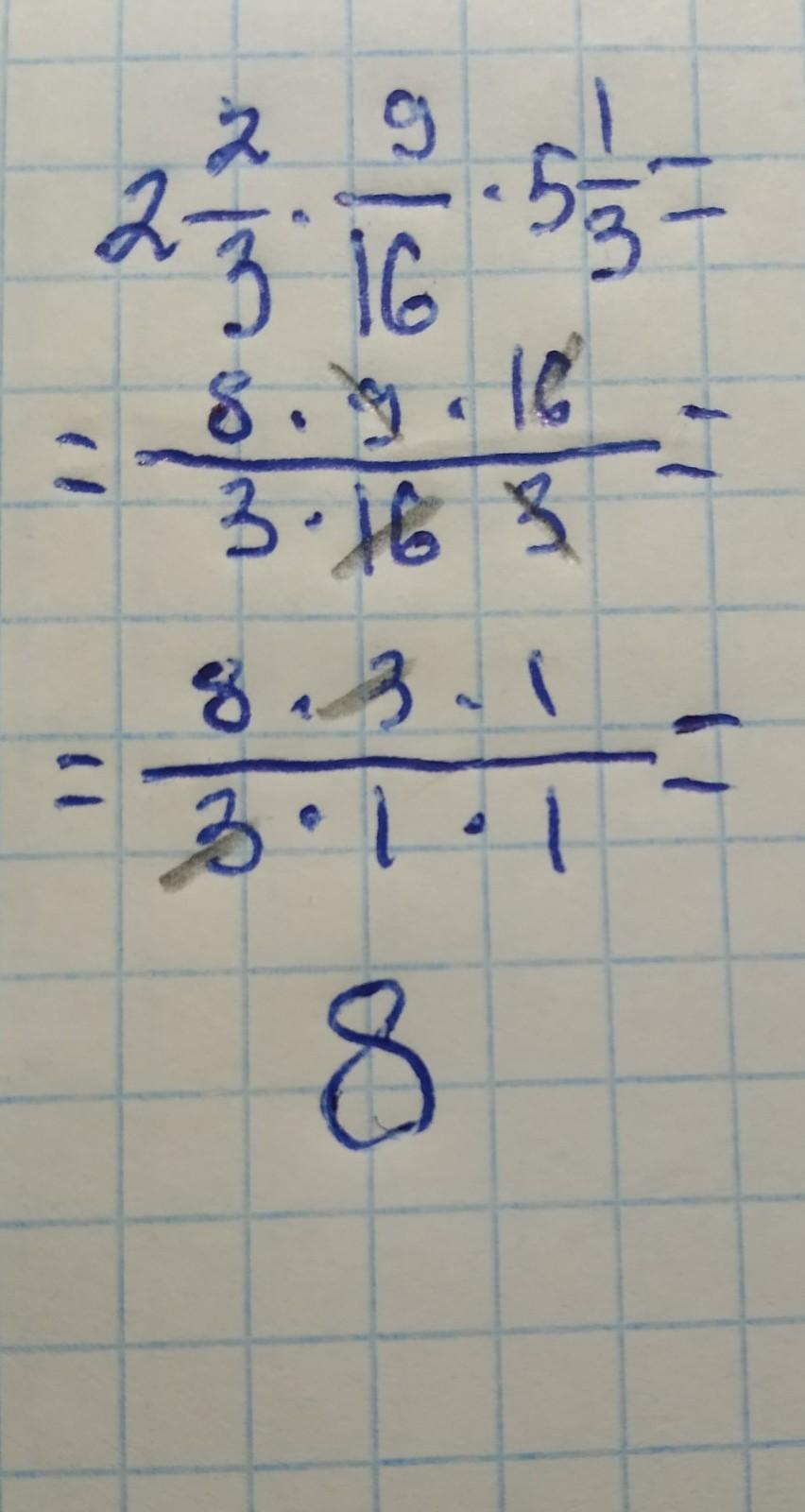 выполните упражнение: 2целых 2/3*9/16*5целых 1/3