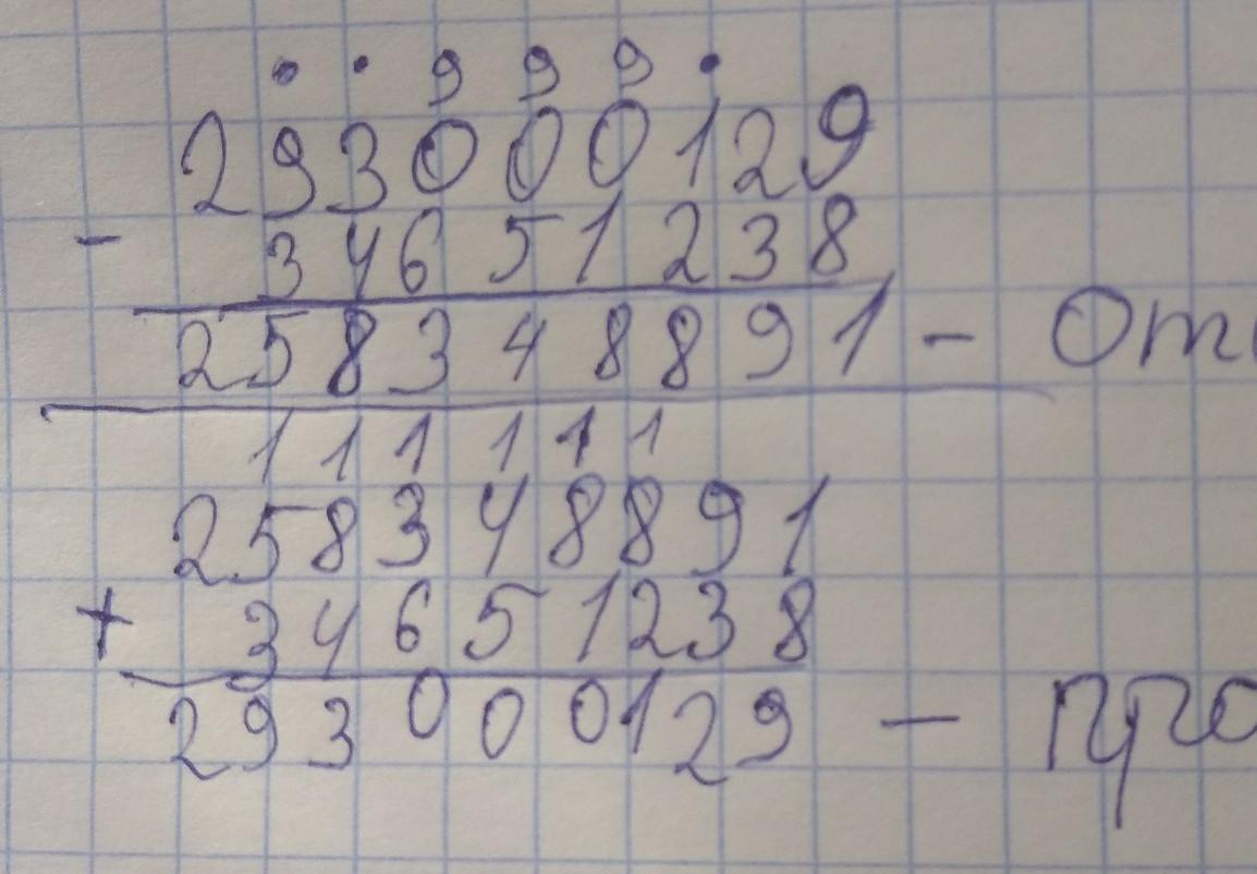 выполите вычитание и проверьте результат сложением.239000129-34651238