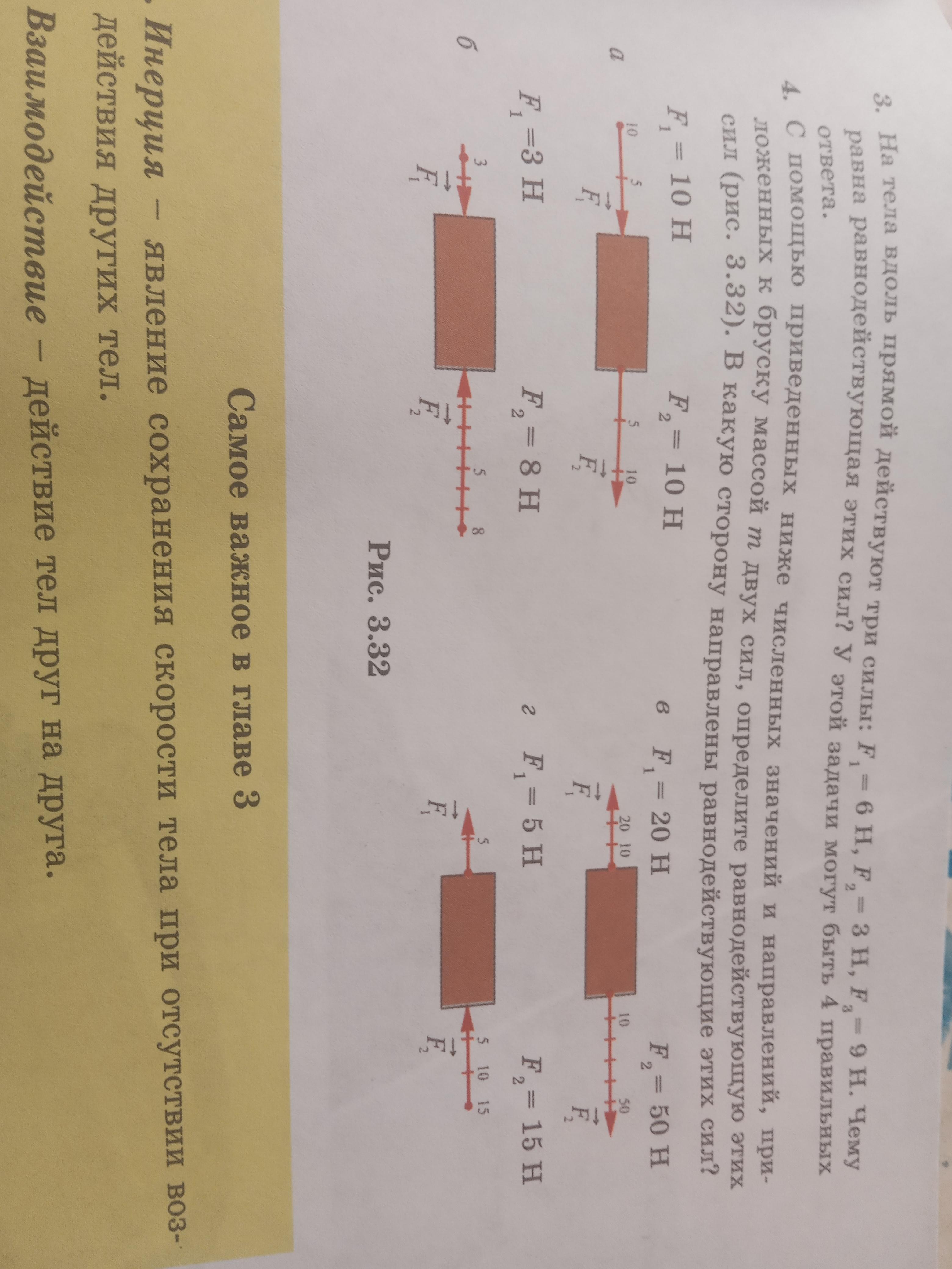 б) F2 - F1 = 5H направлена в левую сторону.