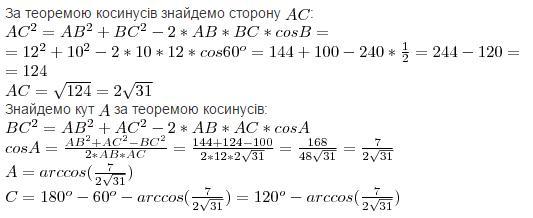 Розв'яжіть трикутник АВС, якщо АВ=7см, ВС=8см, кут С=60 градусів