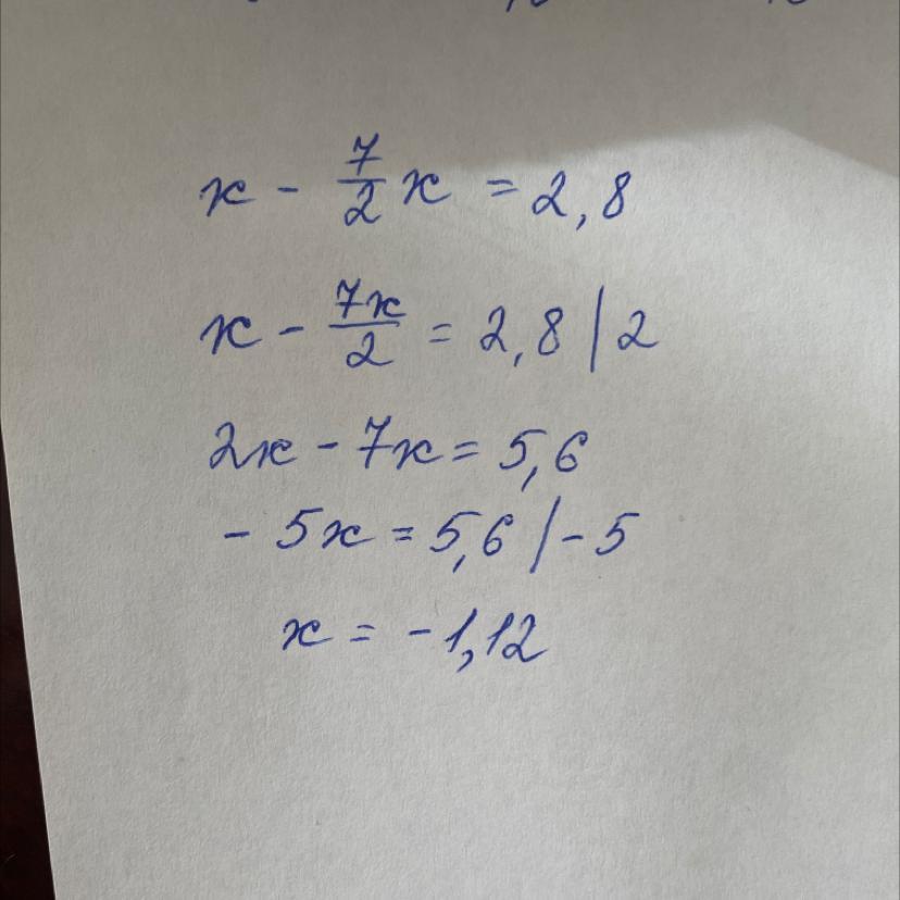 извините но я неправильно написал пример вот правельный:Решите уравнение x - 2/7 x= 2,8