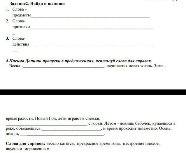 я сделала бы вам 2 задание. но для этого нужен текст из которого нужно выписать слова.