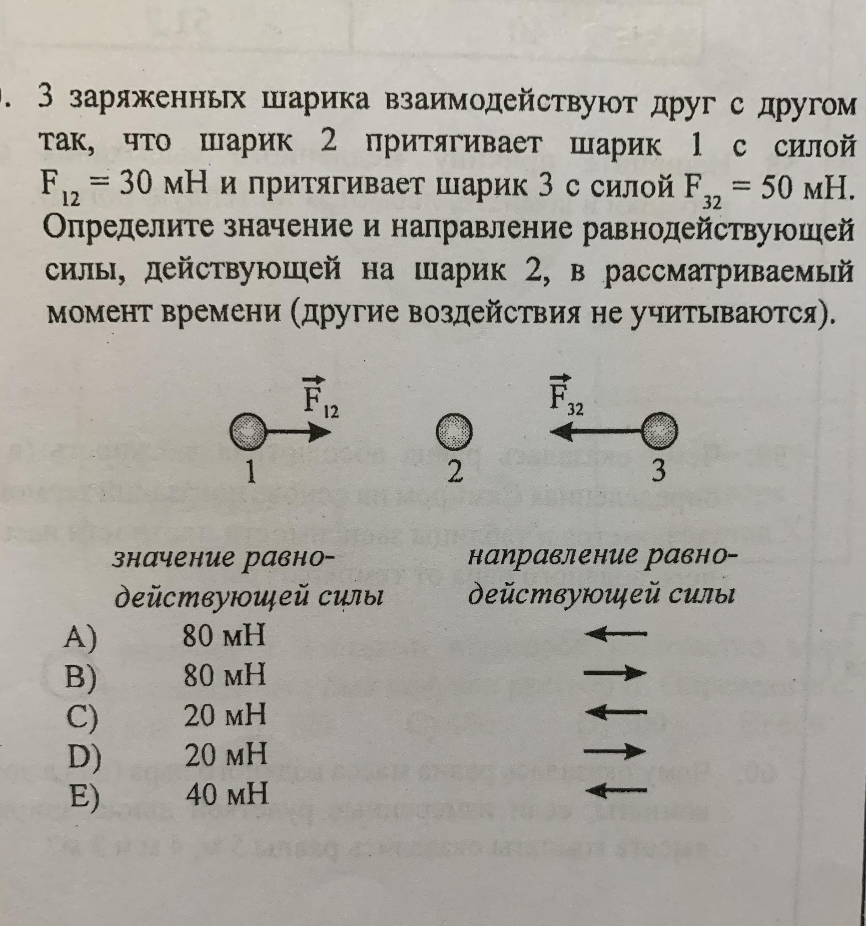 направление слева на право, потому что более сильный заряд справа(50мН).