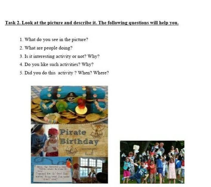 In the picture I see a birthday celebration. People are having fun. This is an interesting activity, because everyone is dressed up as pirates. I want to invite pirate animators for my birthday.