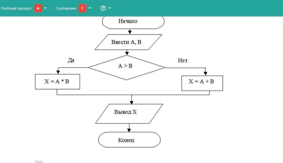если А > B (50 > 2 ДА), то X = A * B = 50 * 2 = 100