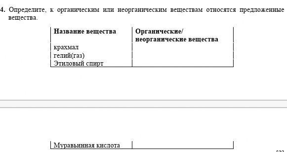 Определите, к органическим или неорганическим веществам относятся предложенные вещества.
