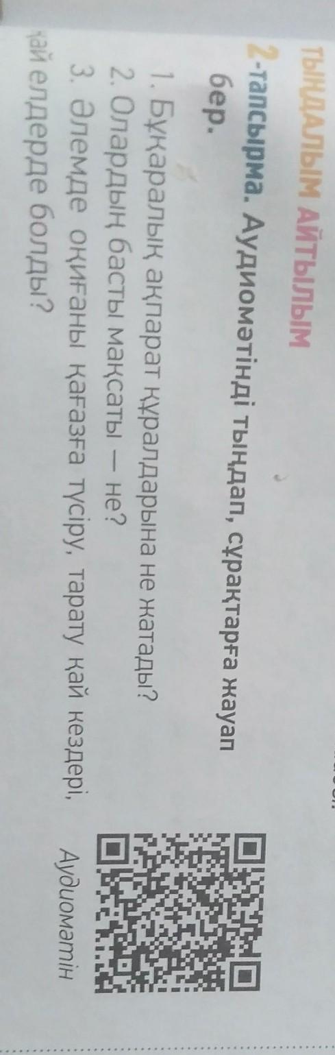 2-тапсырма. Аудиомәтінді тыңдап, сұрақтарға жауап