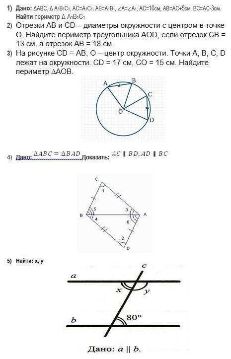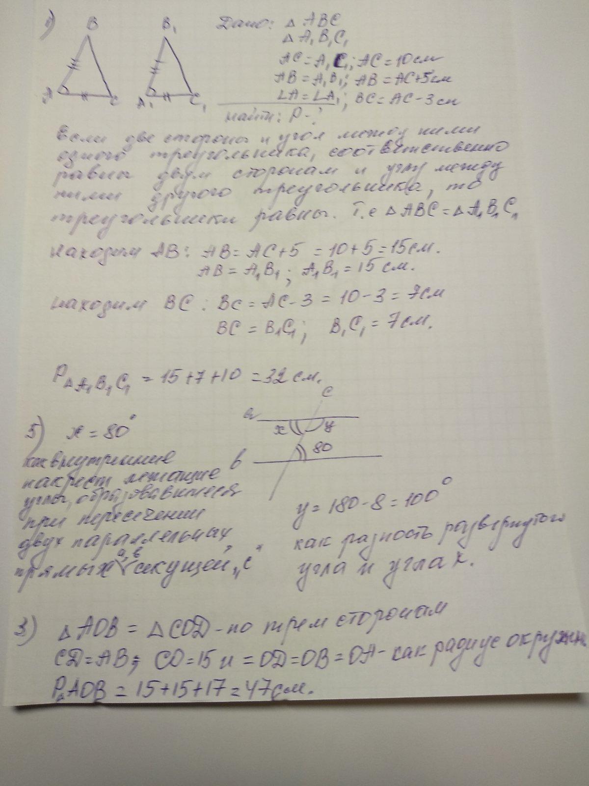 1)Р=32см; 3) Р=47 см.; 5) х=80°, у=100°
