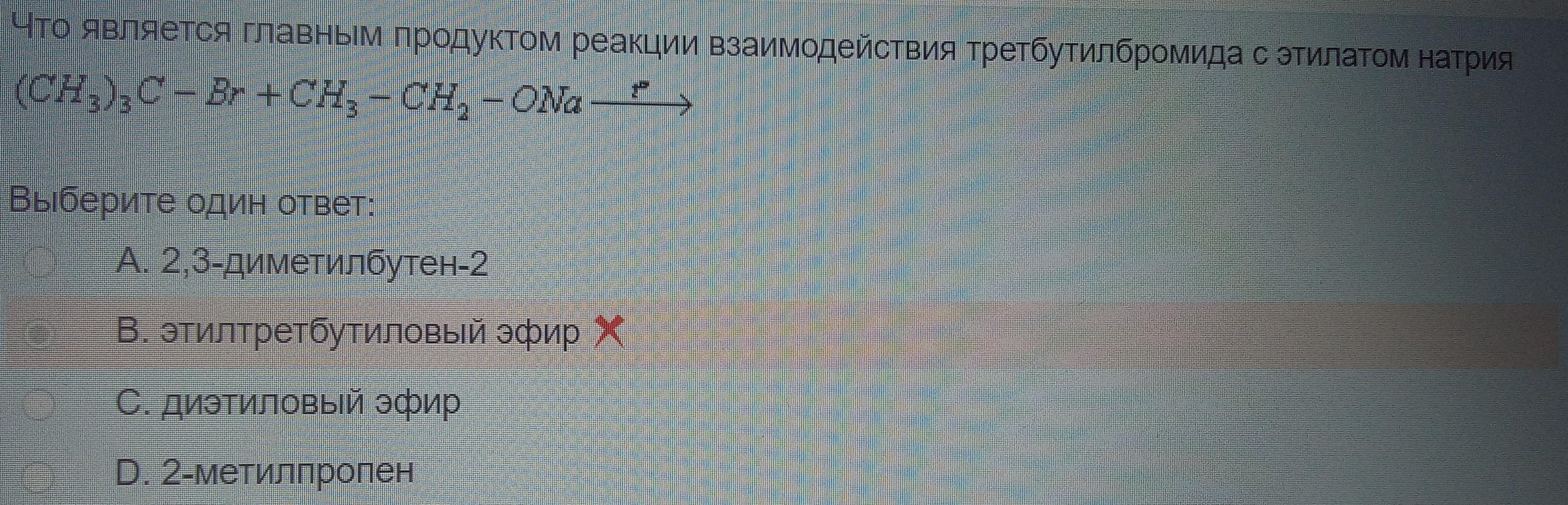 Верный ответ: этилтретбутиловый эфир