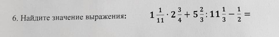 Найдите значения выражения 1 1/11 * 2 3/4+ 5 2/3 : 11 1/3 - 1/2