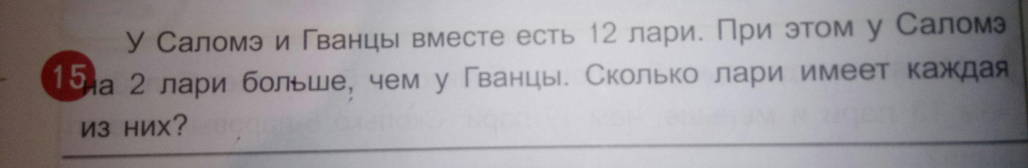 потамушта у Ачи был 14 и у Гиги 14 значит у гиги будет 15 а у ачи 13 (( потпишис