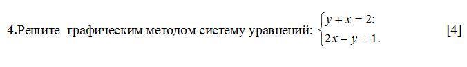 Решите графическим методом систему уравнений y + x = 2 2x - y = 1 [4]