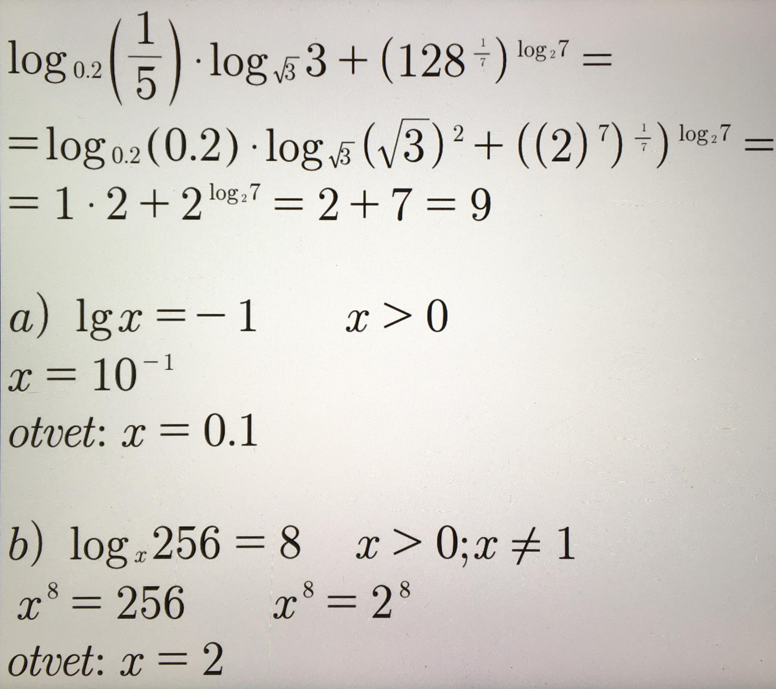 2а)x=10^(-1)=0.1