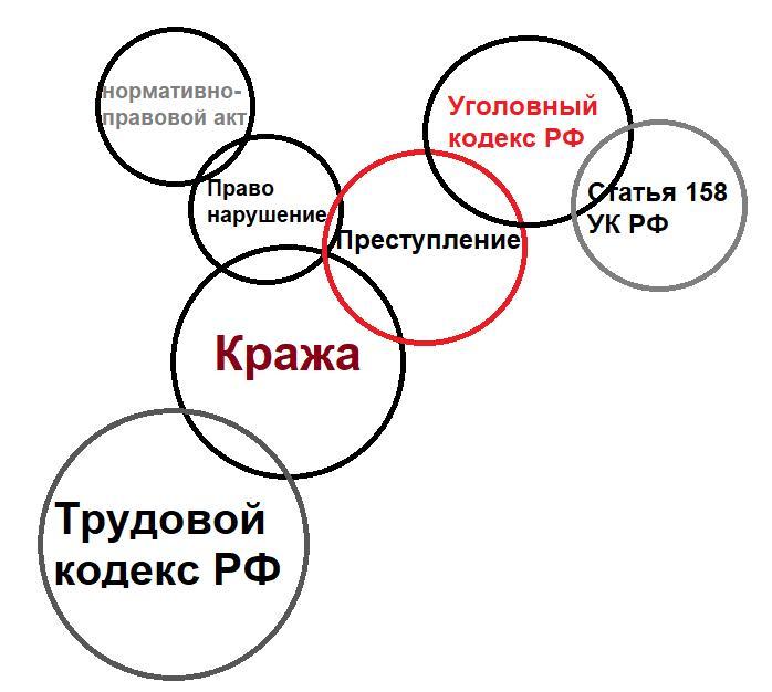 2. Правонарушение, преступление, нормативно-правовой акт, Уголовный кодекс РФ, Статья 158 УК РФ, кража, Трудовой кодекс РФ.