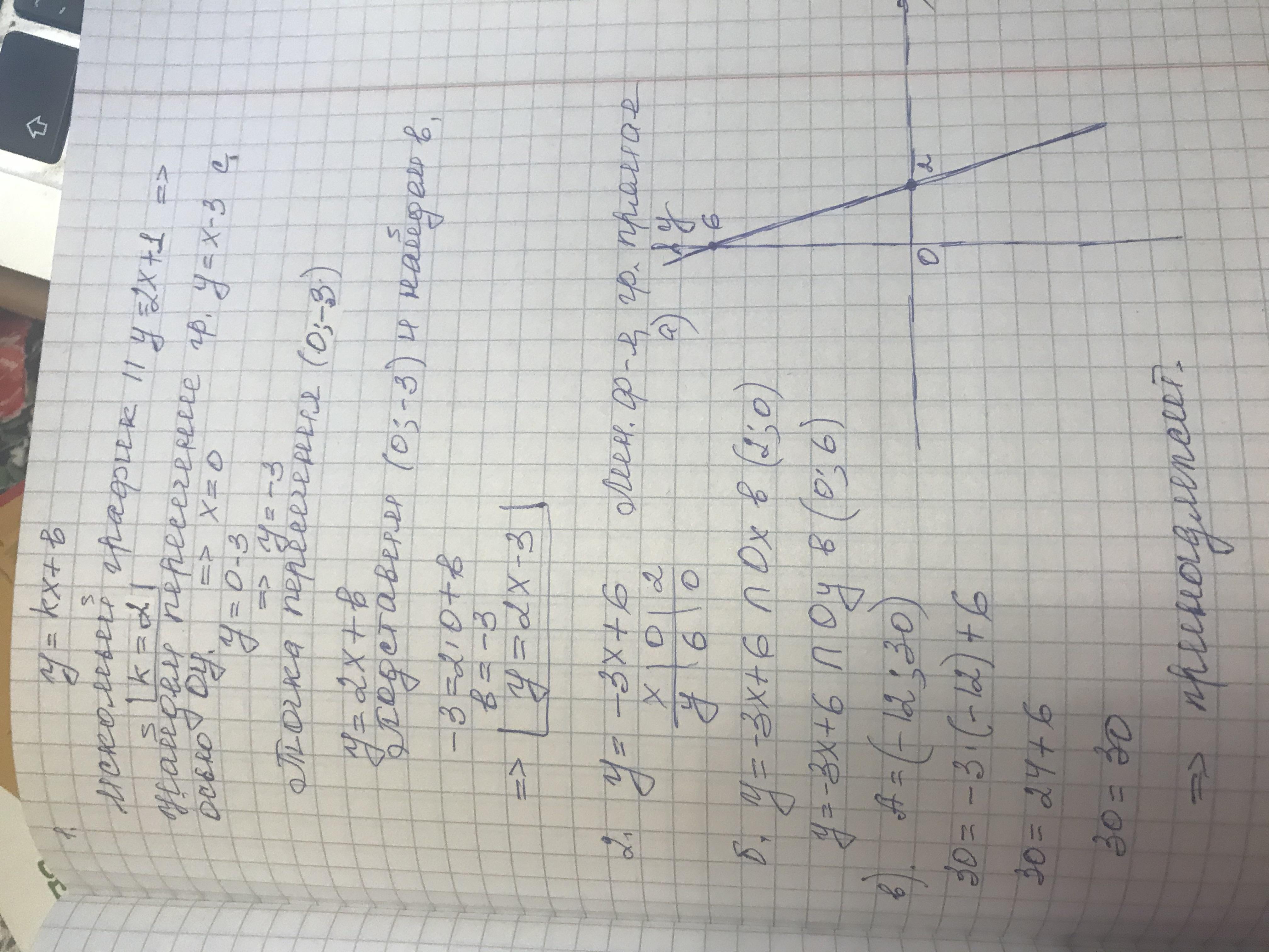 в точке , лежащей на оси ординат.y=-3х +6 -........функция, график-......