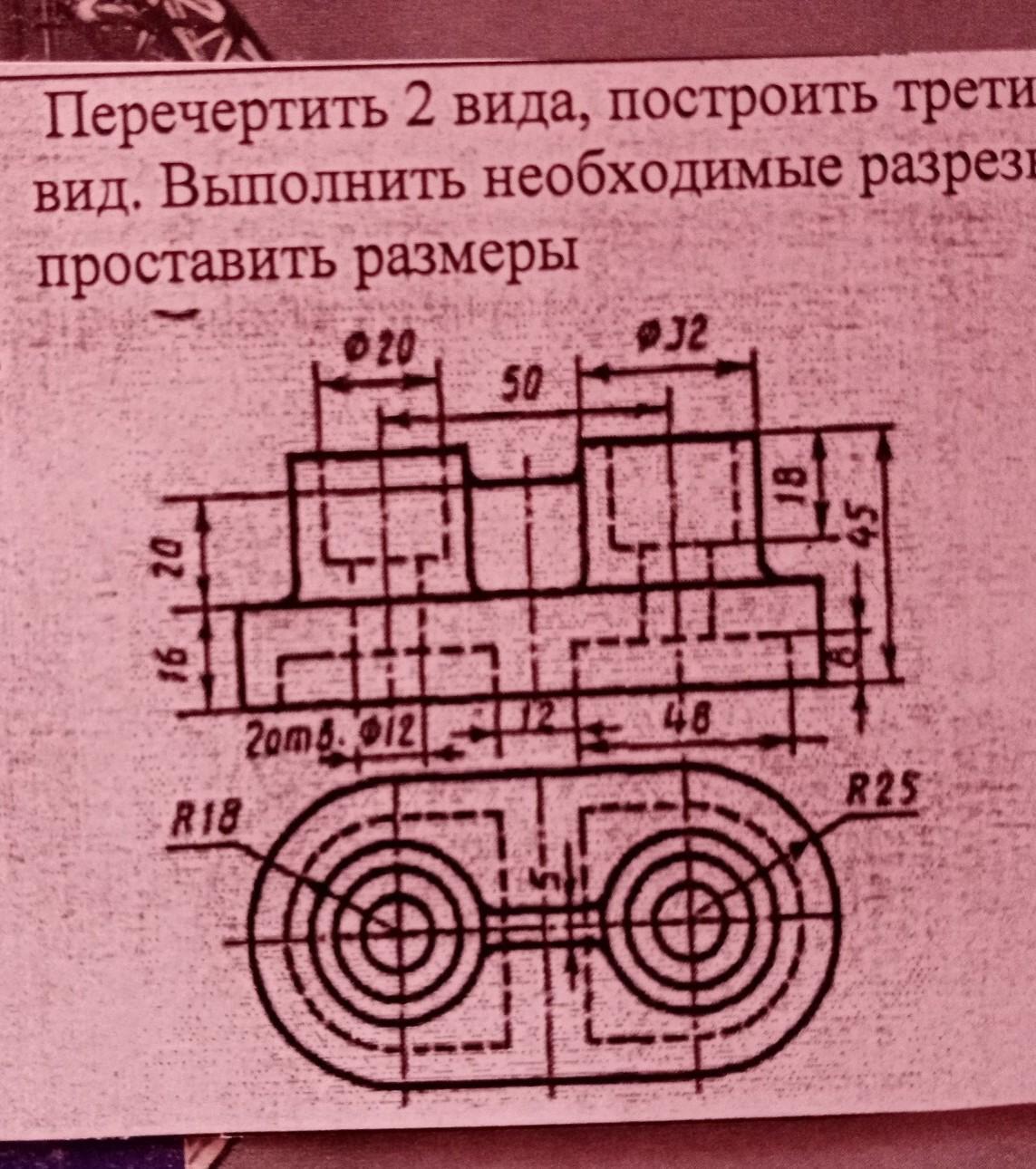 помогите пожалуйста построить 3 вид и выполнить необходимые разрезы
