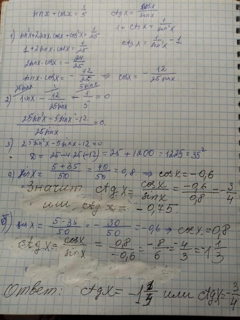 sinx +cosx=1/5 ctgx-?