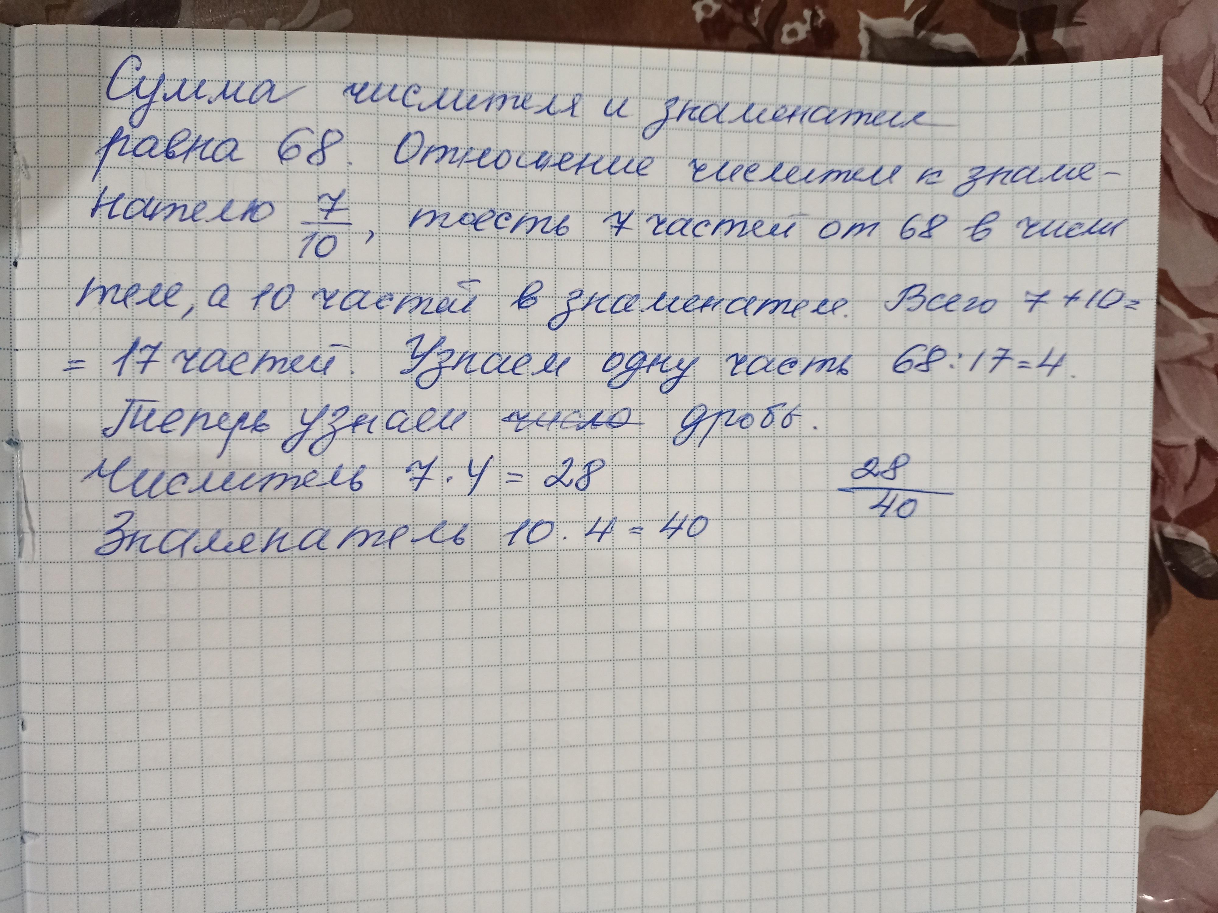 Числитель и знаменатель оба чётные числа, и их сумма равна 68. дробь равна 7/10 что это за дробь?