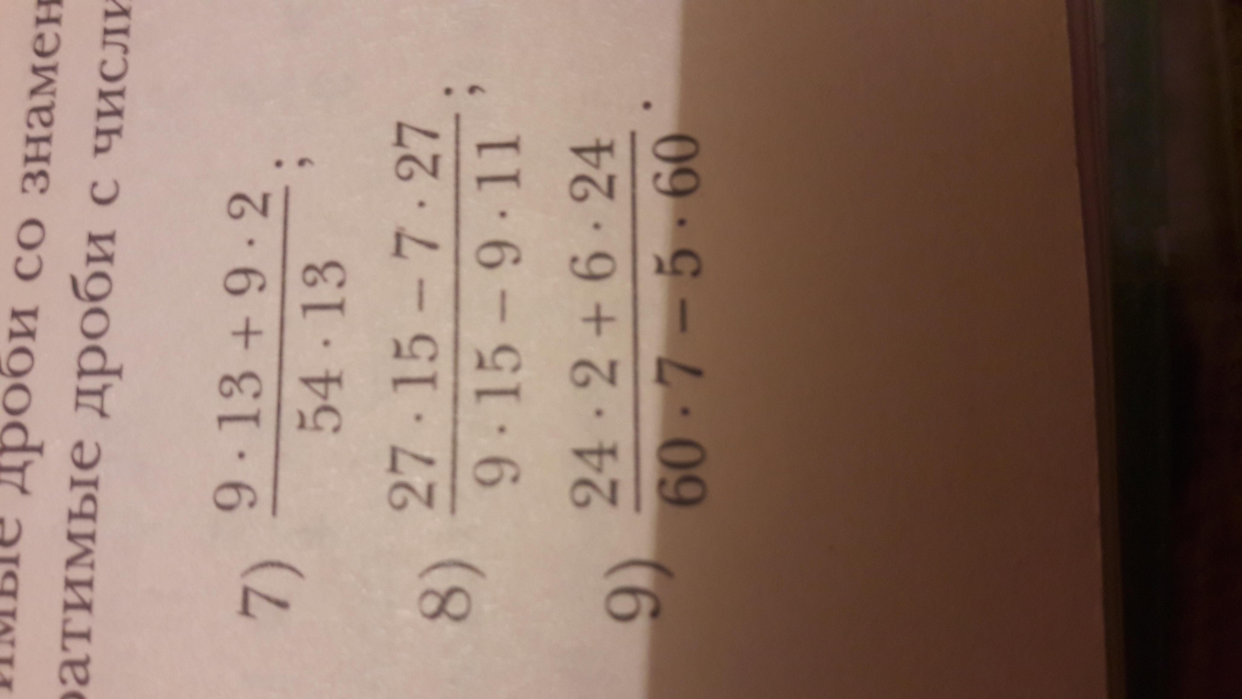 7) 9(13+2)/54*13 = 9*15/54*13 = 5/26;