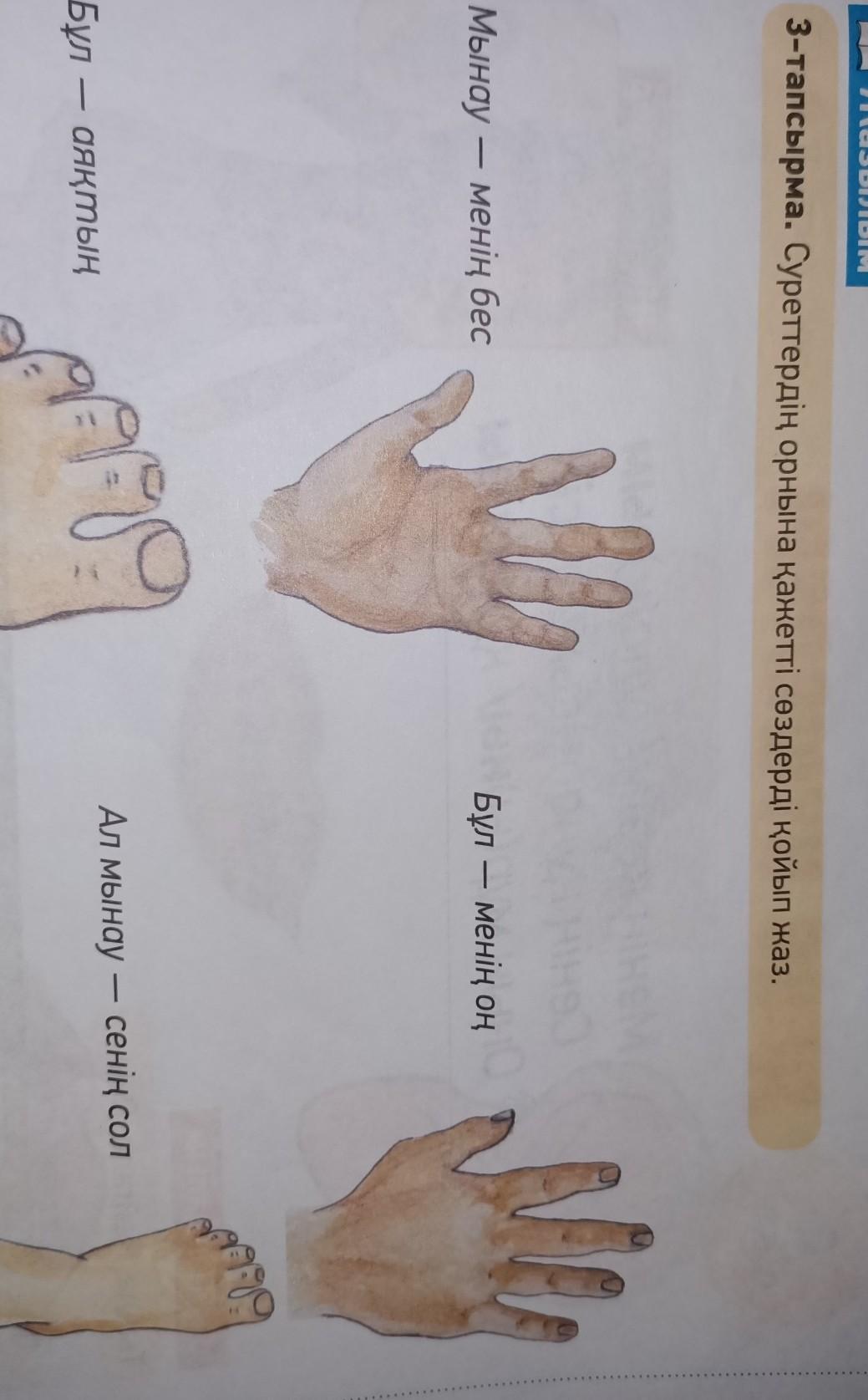 3 бұл аяқтын бес саусағы 4 ал мынау сенің сол аяғын