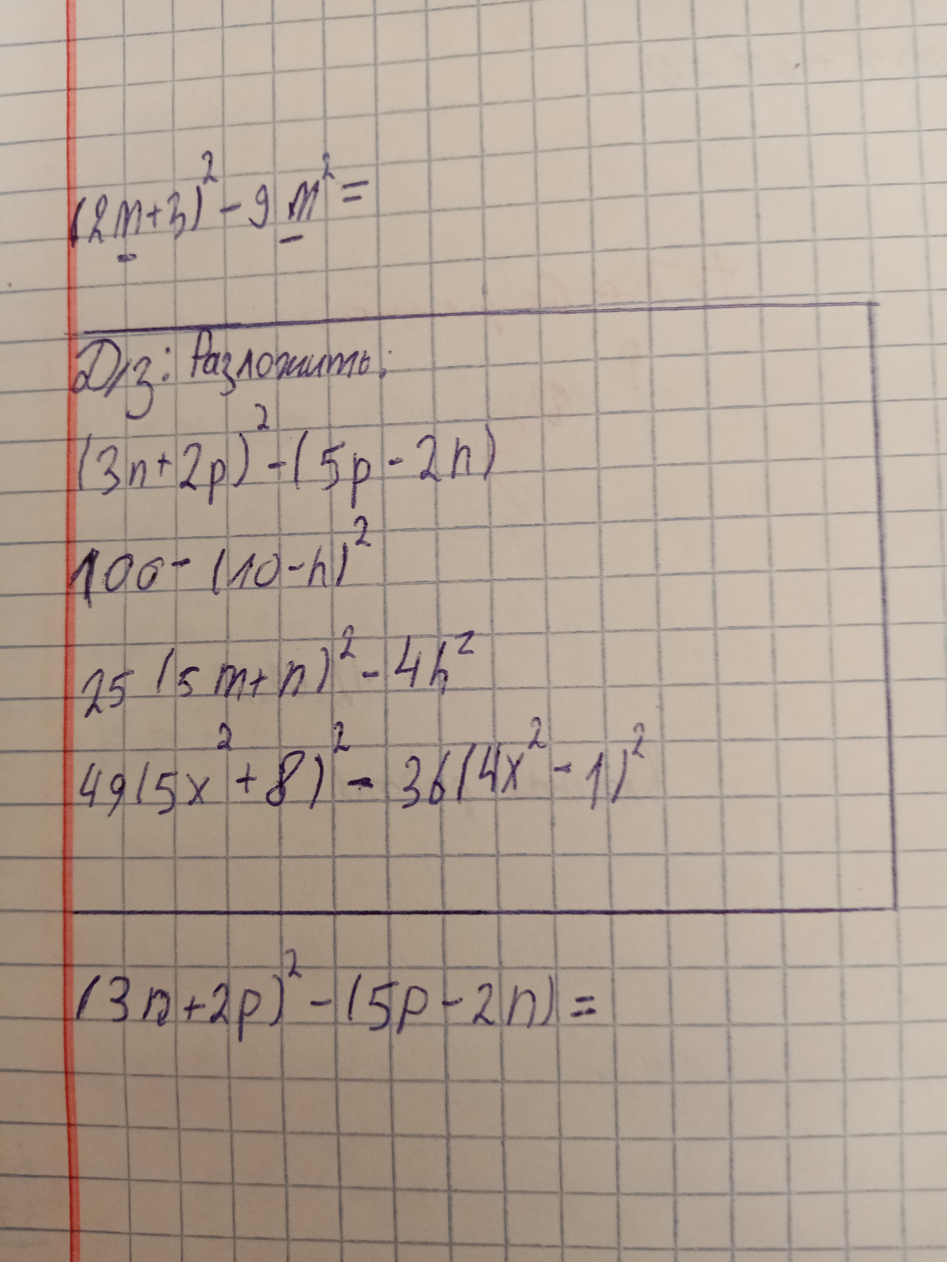 1) (3n+2p)²-(5p-2n)=3n²+2p²-5p+2n