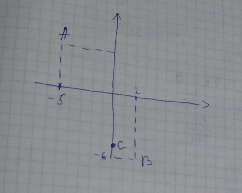 5) Отметьте точки на оси координат А(-5;4), В(2;-6), С(0;-5)