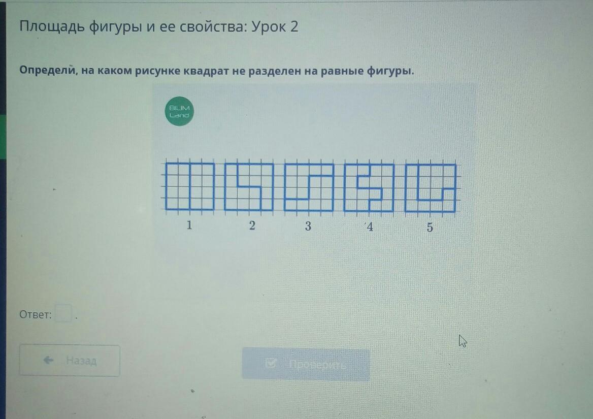 Определи, на каком рисутаке квадрат не разделена на равные фигуры,