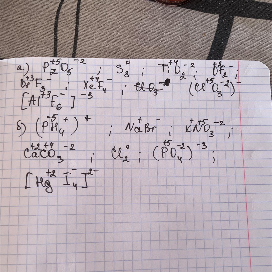б) PH4+, NaBr, KNO3, CaCO3, Cl2, PO43−, [HgI4]2−