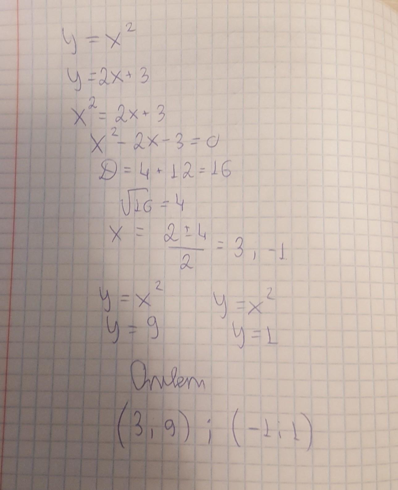 Знайдіть точки перетину графіків функцій у=х² та у=2х+3