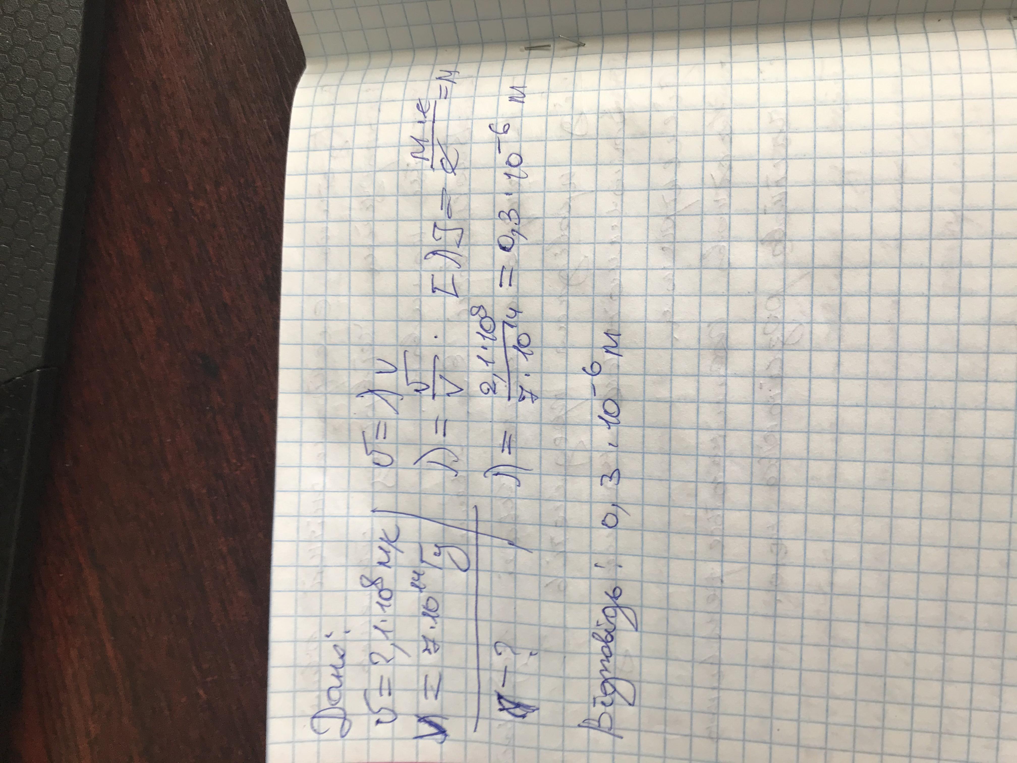 обчисліть довжину електромагнітної хвилі з частотою 7*10^14 Гц у склі, якщо швидкість електромагнітної хвилі у цьому середовищі 2,1*10^8 м\с
