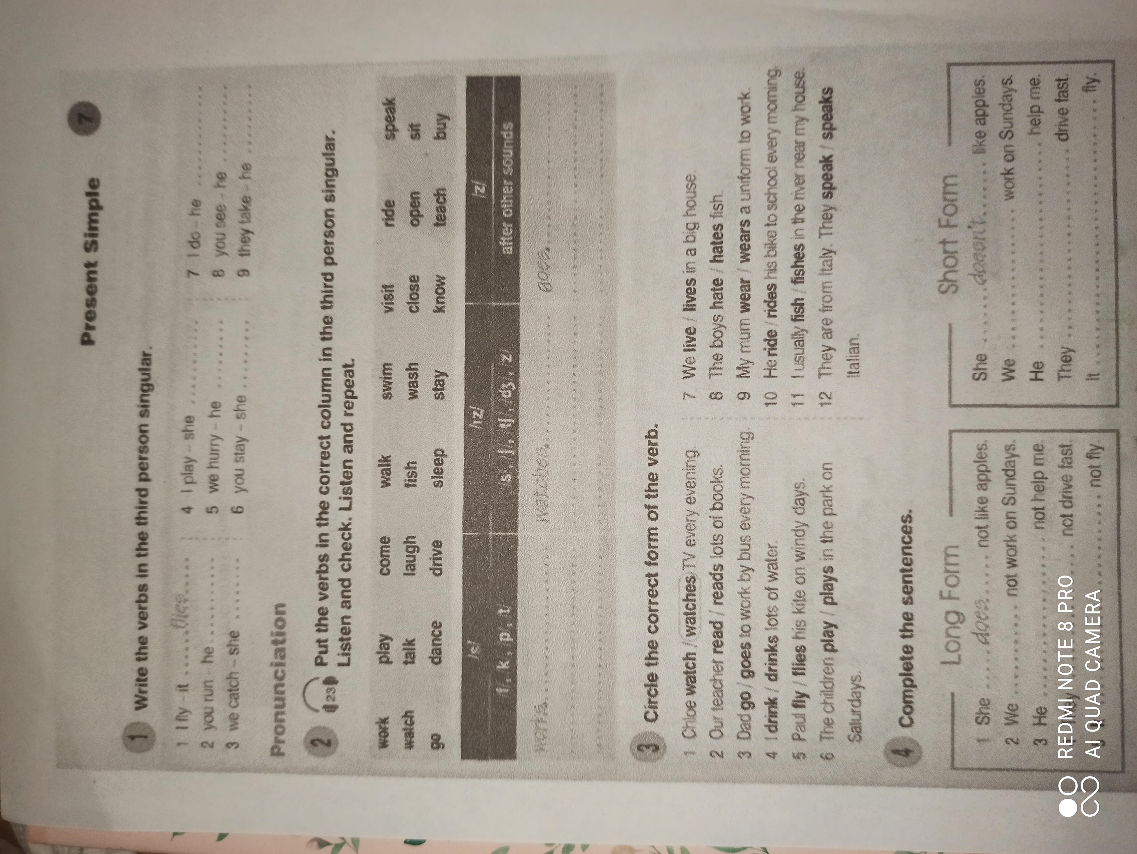 plays, comes, swimmes, rides, opens, goes , drives, knows