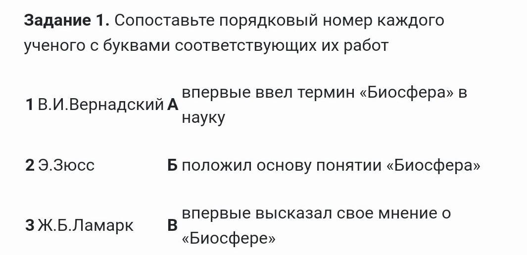 Задание 1. Сопоставьте порядковый номер каждого ученого с буквами соответствующих их работ